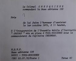 1975 étant l’année au cours de laquelle l’EMI a déménagé de Mont de Marsan sur la base de Toul Rosières, emplacement qu’il occupera jusqu’au retrait du service du JAGUAR.