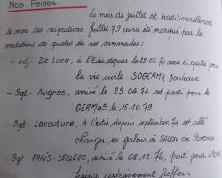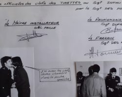 Les anciens participants au repas de fin de stage ETIS du 1/11, se souviendront peut-être de cette anecdote. Après que le commandant d’escadron encadré par son OAT et le chef de l’ETIS, ai mis fin à son discours, quelques facétieux scandèrent : la moumoute, la moumoute,…un discours, un discours ! Devant cette demande reprise en cœur par le reste de la troupe, le commandant se pencha vers le chef de l’ETIS et lui demanda : Qui c’est la moumoute ? Silence gêné de celui qui arborait sur sa tête un complément capillaire peu discret. Gène certainement partagée par l’OAT qui lui-même avait sur son crâne un toupet d’un autre standing. C’est ainsi que les mécanos du 1/11 firent connaissance avec le ‘’gang des postiches ‘’.